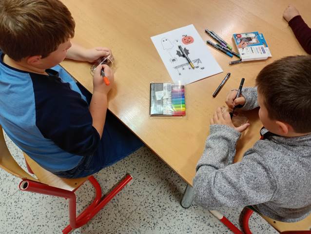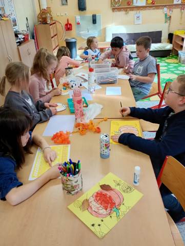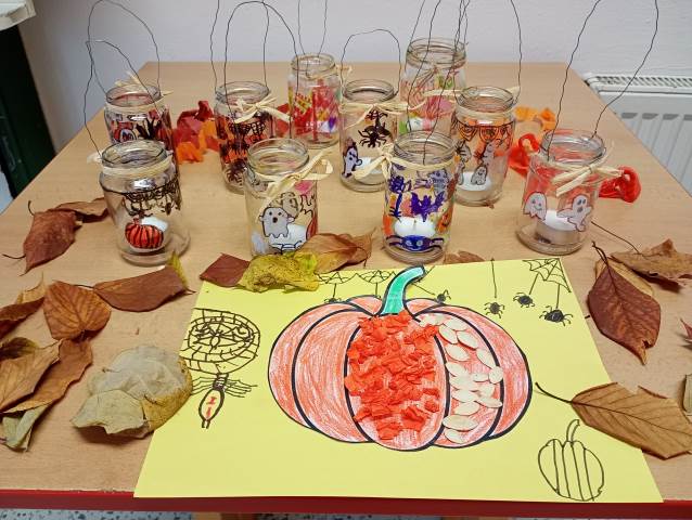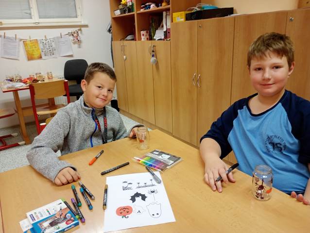 Ve školní družině jsme si povídali na téma Halloween. Kdy a proč se slaví, jak tento svátek probíhá. Žáci malovali skleněné lucerničky, vyzdobili si kreslené dýně a startovací listiny k halloweenské stezce.