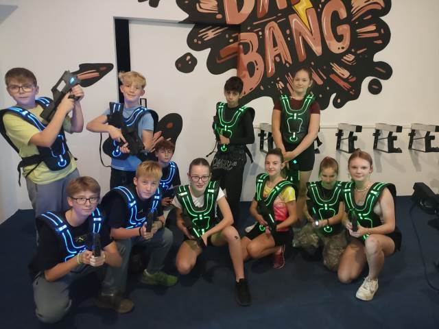 Páteční odpoledne odstartovalo velkou výpravou. Děti nasedly na autobus a zamířily do Opavy do populární Bang Bang Arény. Zde si na maximum užily adrenalinu při laser game a procvičily postřeh u pixel game. Mezi herními koly stihli účastníci navštívit i nákupní centrum Breda Weinstein, kde načerpali energii na zbytek večera.