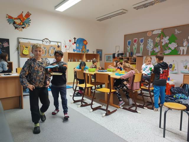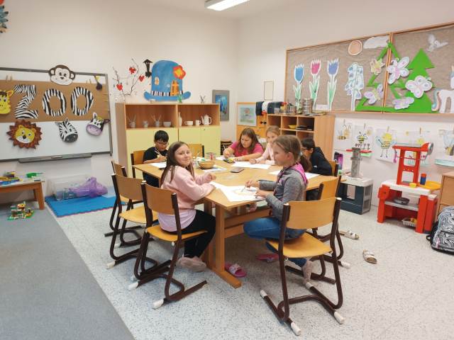 Společně jsme se také ponořili do čtení pohádek Karla Čapka – Velká pohádka doktorská, pohádky pošťácké a psí, příběh O princezně solimánské, Případ s hejkalem a případ s Havlovickým vodníkem. Pohádky se staly inspirací pro naši tvorbu. Zapojili jsme se do projektu „Záložka do knihy spojuje školy“, jehož cílem je navázání kontaktů mezi českými a slovenskými ZŠ a podpora čtenářské gramotnosti prostřednictvím výměny záložek. Děti vytvořily originální záložky, které se spolu s knihami stanou „cestovateli“ mezi školami a jejich příběhy.