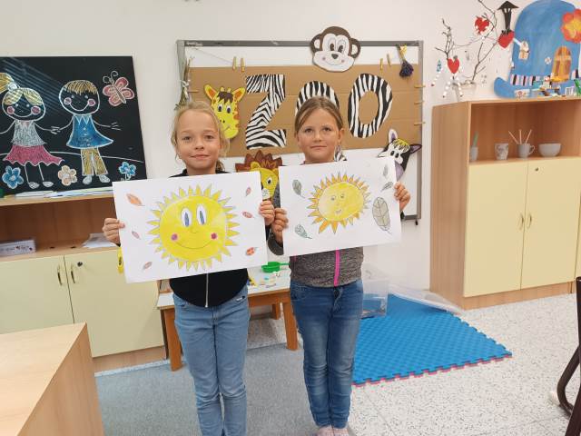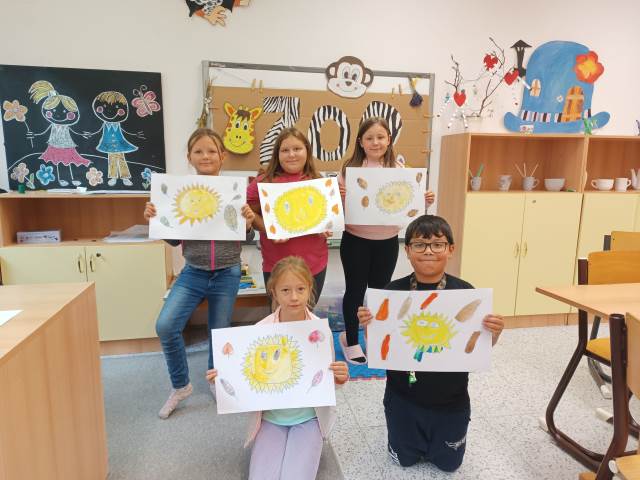 Kromě toho jsme si užívali podzimní tvoření. Malovali jsme podzimní sluníčko a podzimní strom, které nám nyní zdobí družinu a připomínají barevnou atmosféru podzimu.