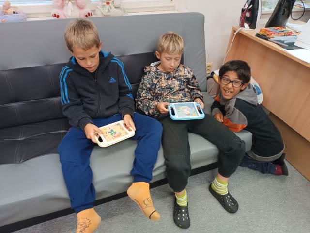 Často jsme také navštěvovali školní hřiště a zahradu. Pobyt jsme si zpříjemnili překonáváním překážek na průlezkách, fotbalem a jinými aktivitami.