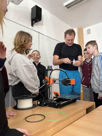V pátek 13. března 2026 k nám zavítal lektor Ing. Oldřich Sladkovský ze Střediska volného času, aby žáky 1.G provedl dynamickým světem 3D tisku.