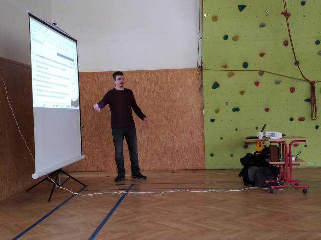 Dne 18. 2. navštívil naši školu Běžící češtinář, Mgr. Jarmil Vepřek, Ph.D., známý popularizátor českého jazyka. Pro žáky si připravil dvě tematicky odlišná setkání, která měla ukázat, že mateřština není jen o diktátech, ale o schopnosti s jazykem správně a srozumitelně pracovat v běžném životě.
