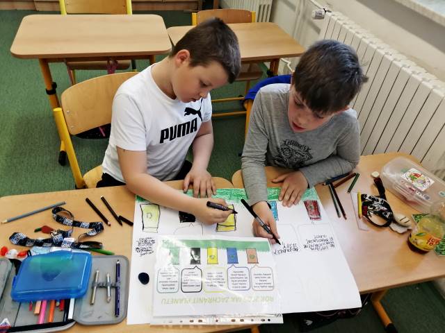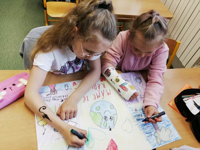 Nejstarší žáci se zaměřili na živočichy našich lesů a na floru a faunu v blízkém okolí. Pracovali s obrázky, krátkými texty a vyplňovali pracovní listy na danou tématiku. Tím si rozšířili znalosti o přírodě a posílili k ní pozitivní vztah. Své poznatky také děti zpracovaly kreativně. Vytvářely plakáty na téma ochrany Země nebo třídění odpadu.