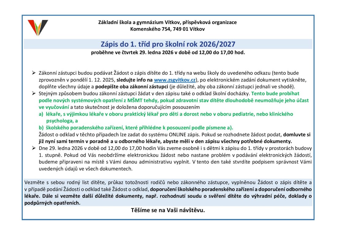 Základní škola a gymnázium Vítkov, příspěvková organizace